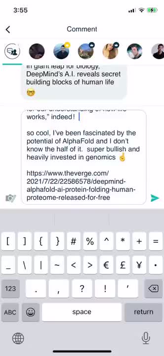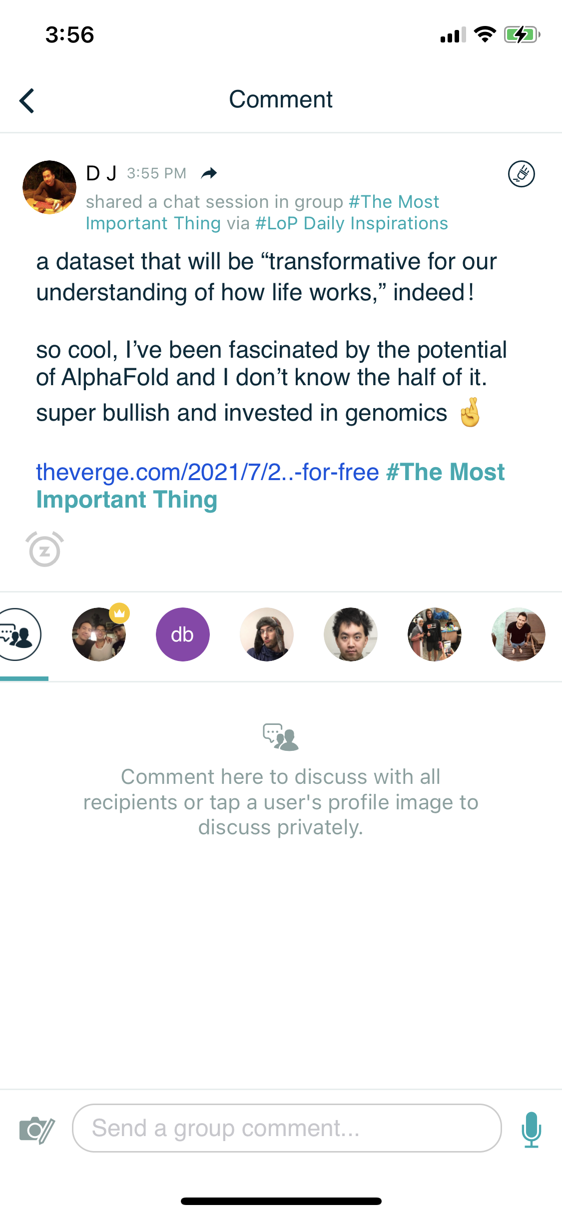 Comment here to discuss with all recipients or tap a user's profile image to discuss privately.