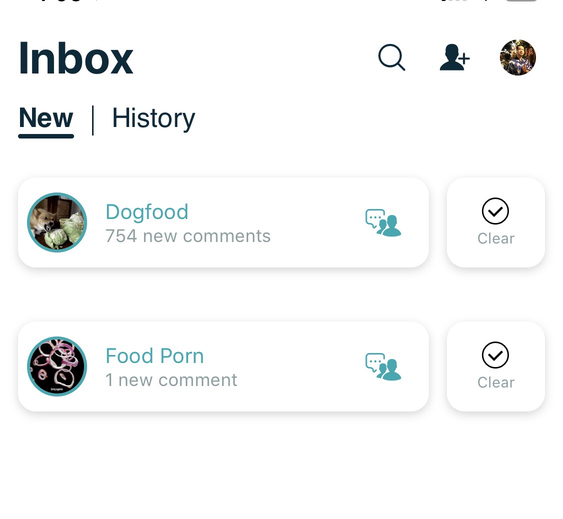 Comment here to discuss with all recipients or tap a user's profile image to discuss privately.