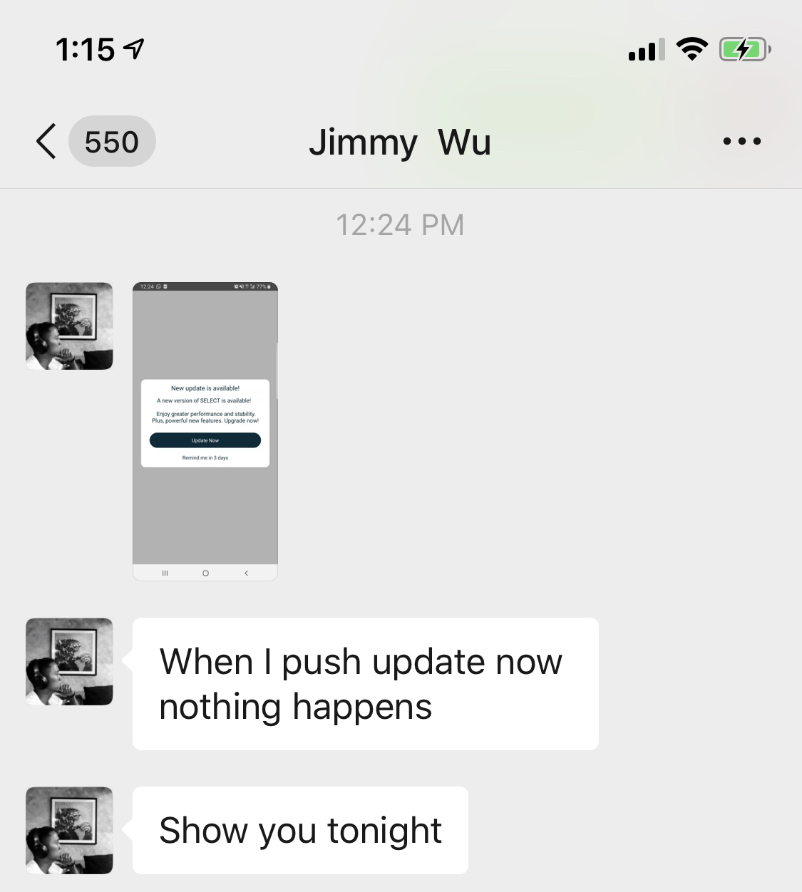 Comment here to discuss with all recipients or tap a user's profile image to discuss privately.