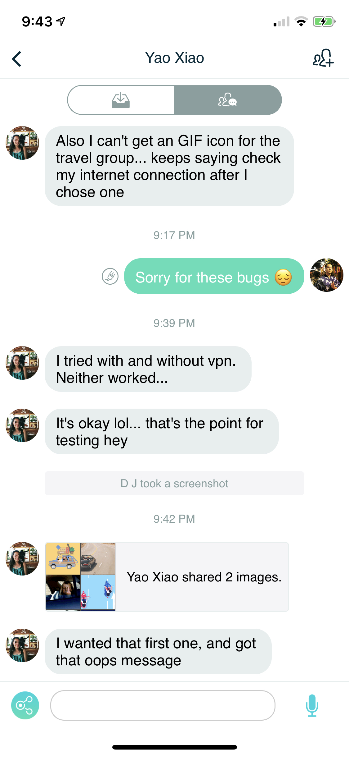 Comment here to discuss with all recipients or tap a user's profile image to discuss privately.
