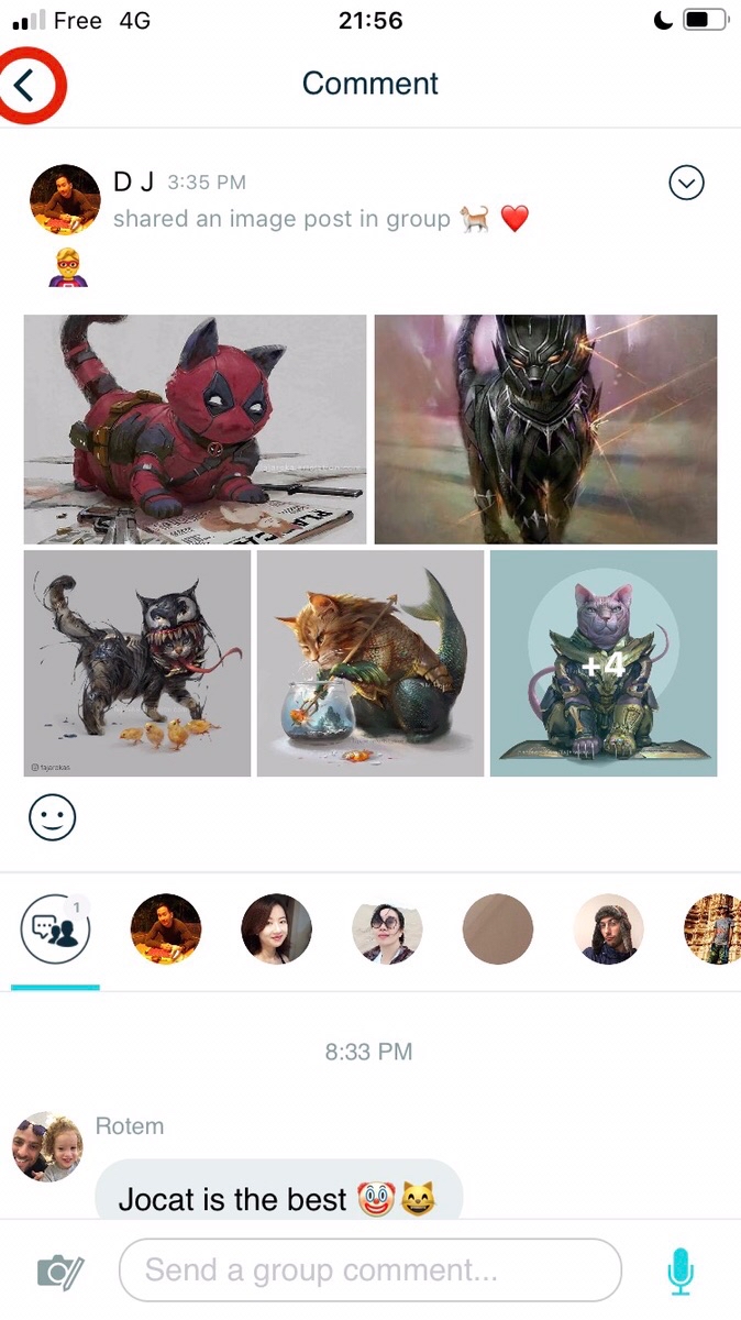 Comment here to discuss with all recipients or tap a user's profile image to discuss privately.