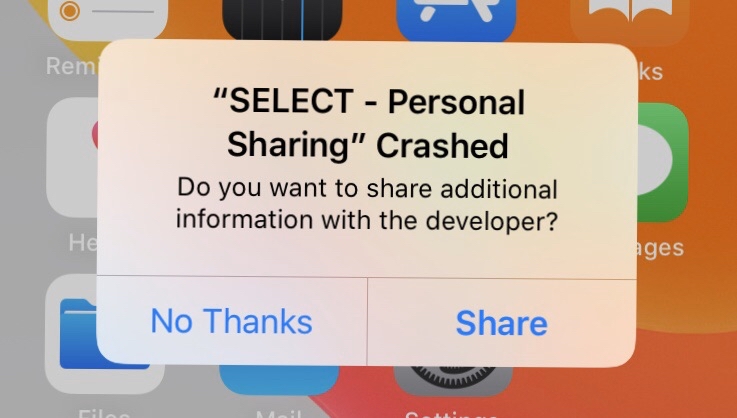 Also, if you hit Share, Sentry won’t receive the log. I am not 100% sure, but I made the test once and Sentry didn’t got it. But if you hit No Thanks, Sentry does got the crash report.
