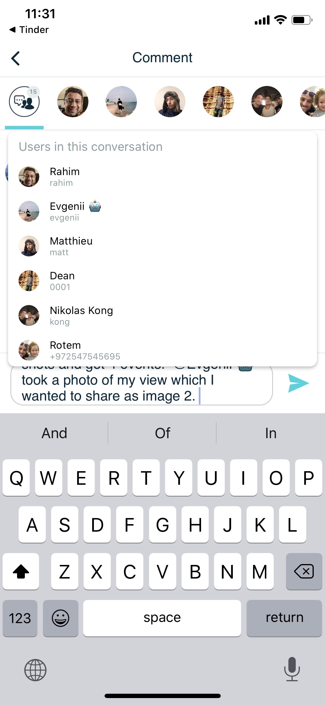Comment here to discuss with all recipients or tap a user's profile image to discuss privately.
