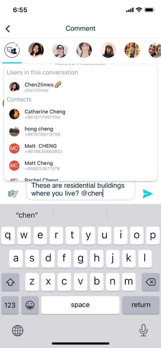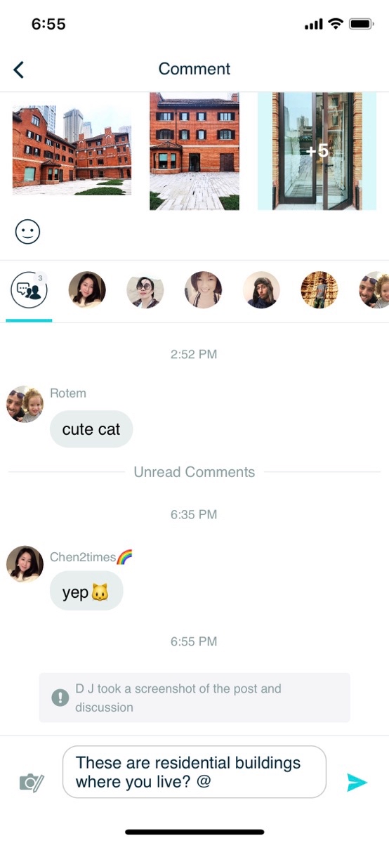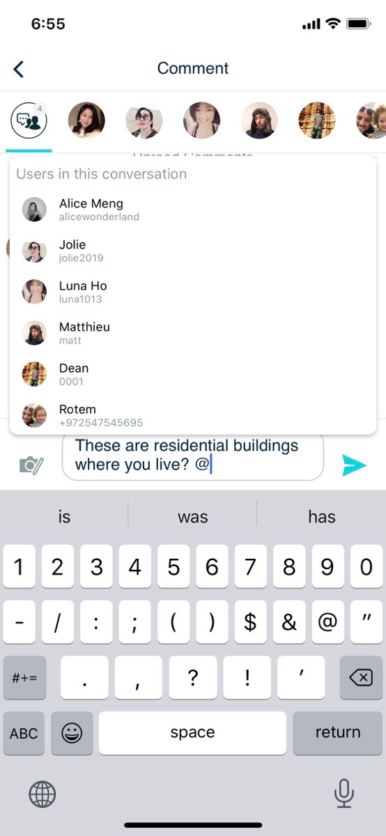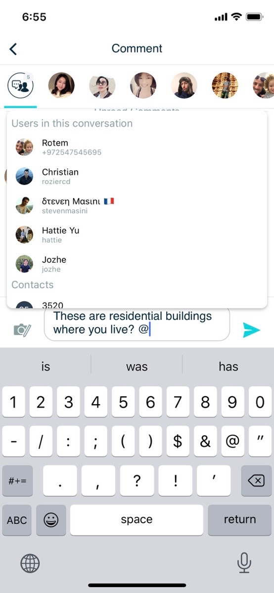 Comment here to discuss with all recipients or tap a user's profile image to discuss privately.