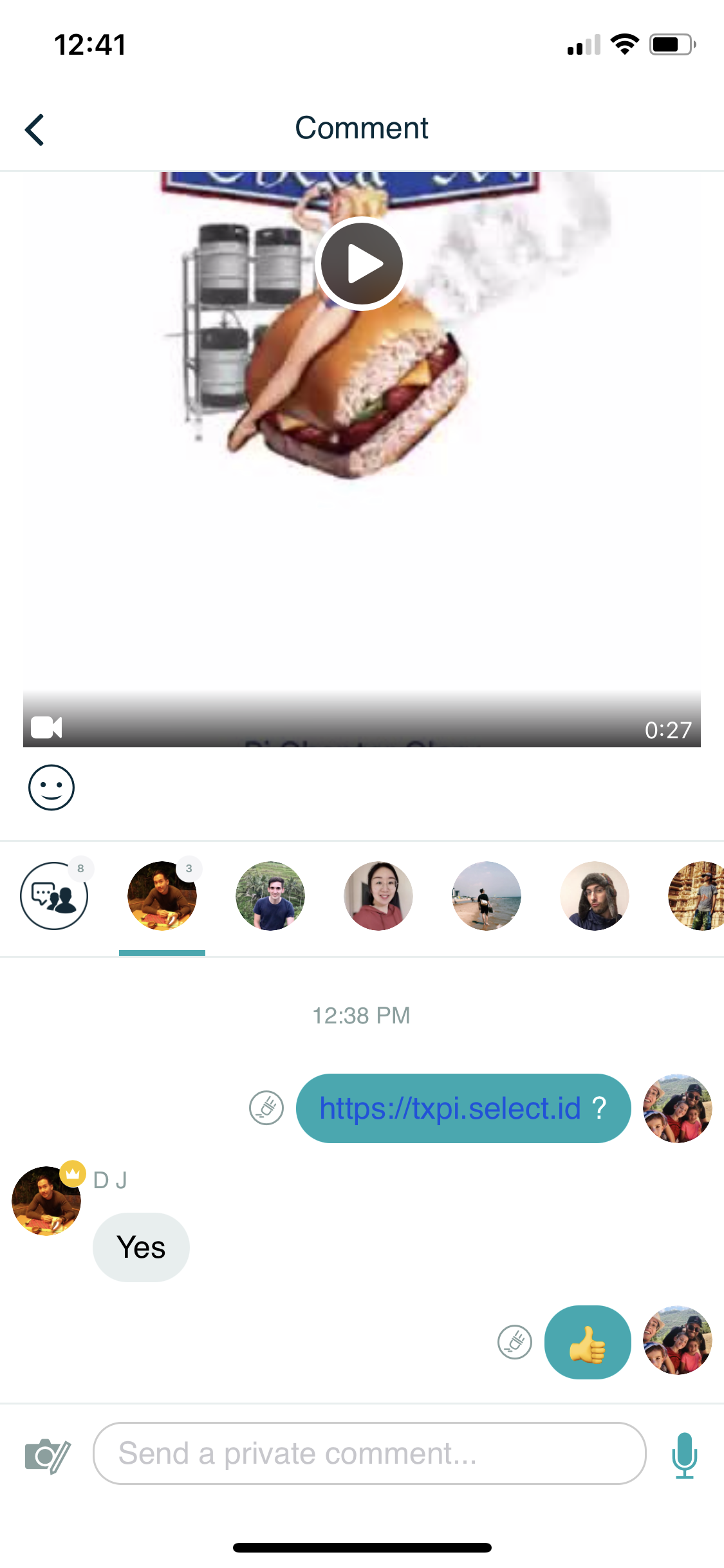 Comment here to discuss with all recipients or tap a user's profile image to discuss privately.