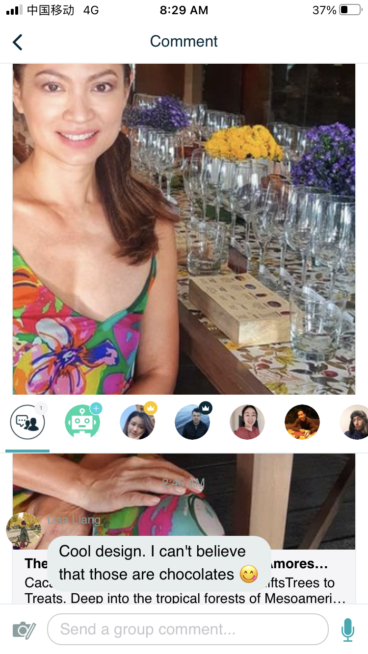 Comment here to discuss with all recipients or tap a user's profile image to discuss privately.