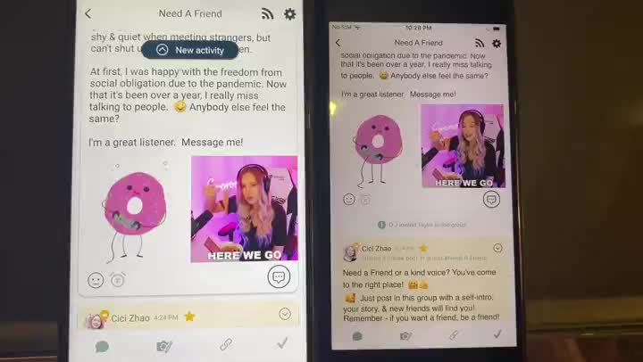 Comment here to discuss with all recipients or tap a user's profile image to discuss privately.