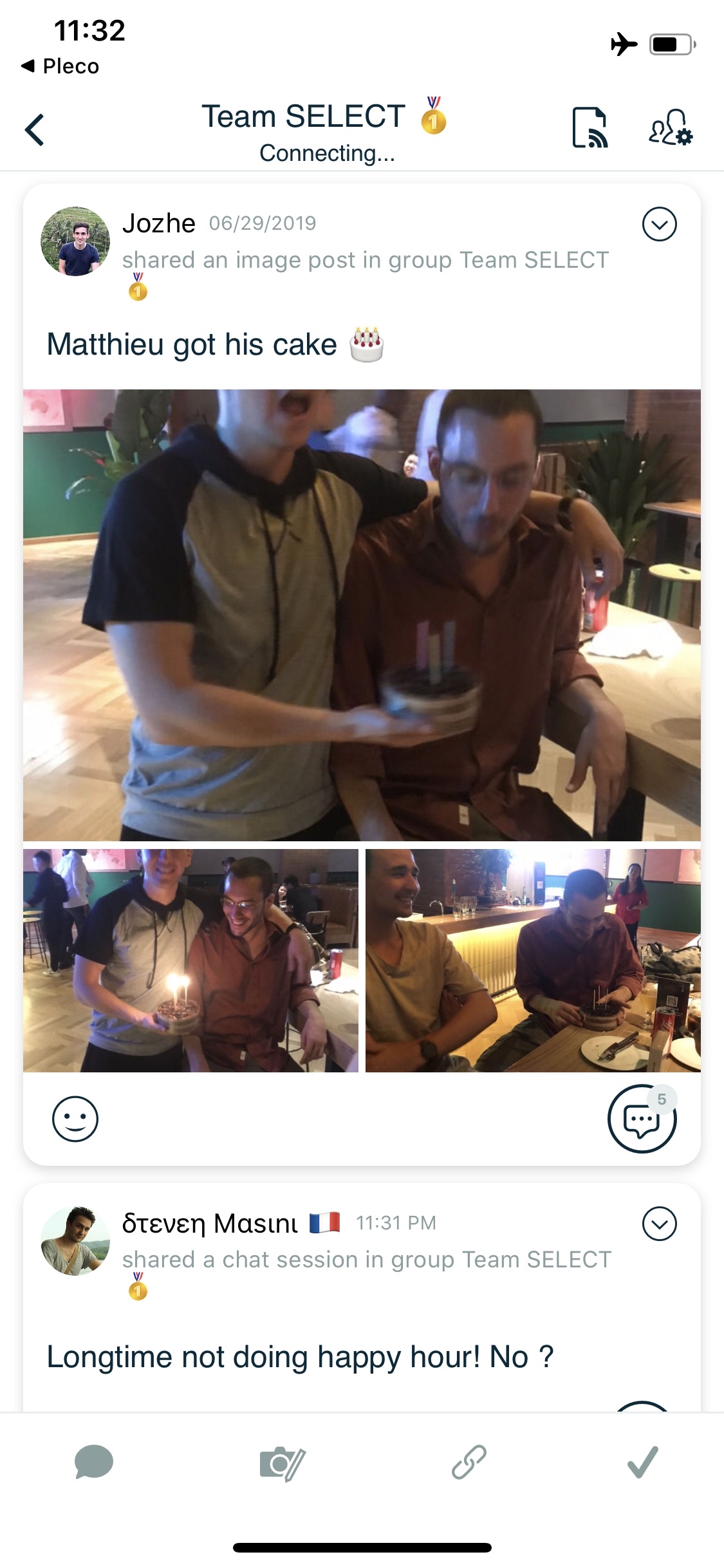 Comment here to discuss with all recipients or tap a user's profile image to discuss privately.