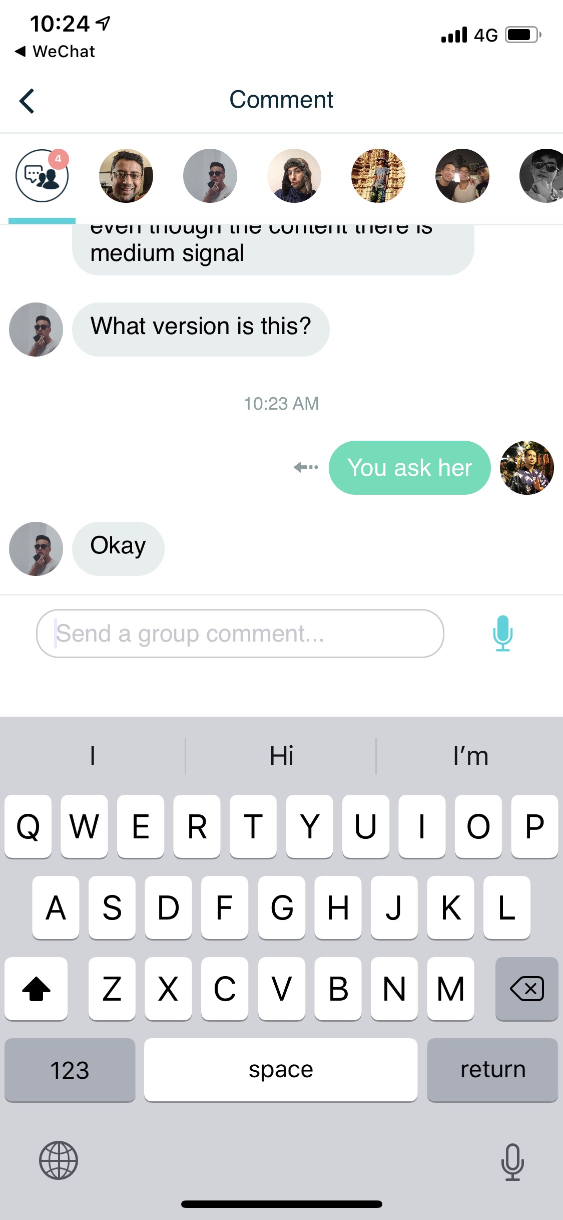 Comment here to discuss with all recipients or tap a user's profile image to discuss privately.