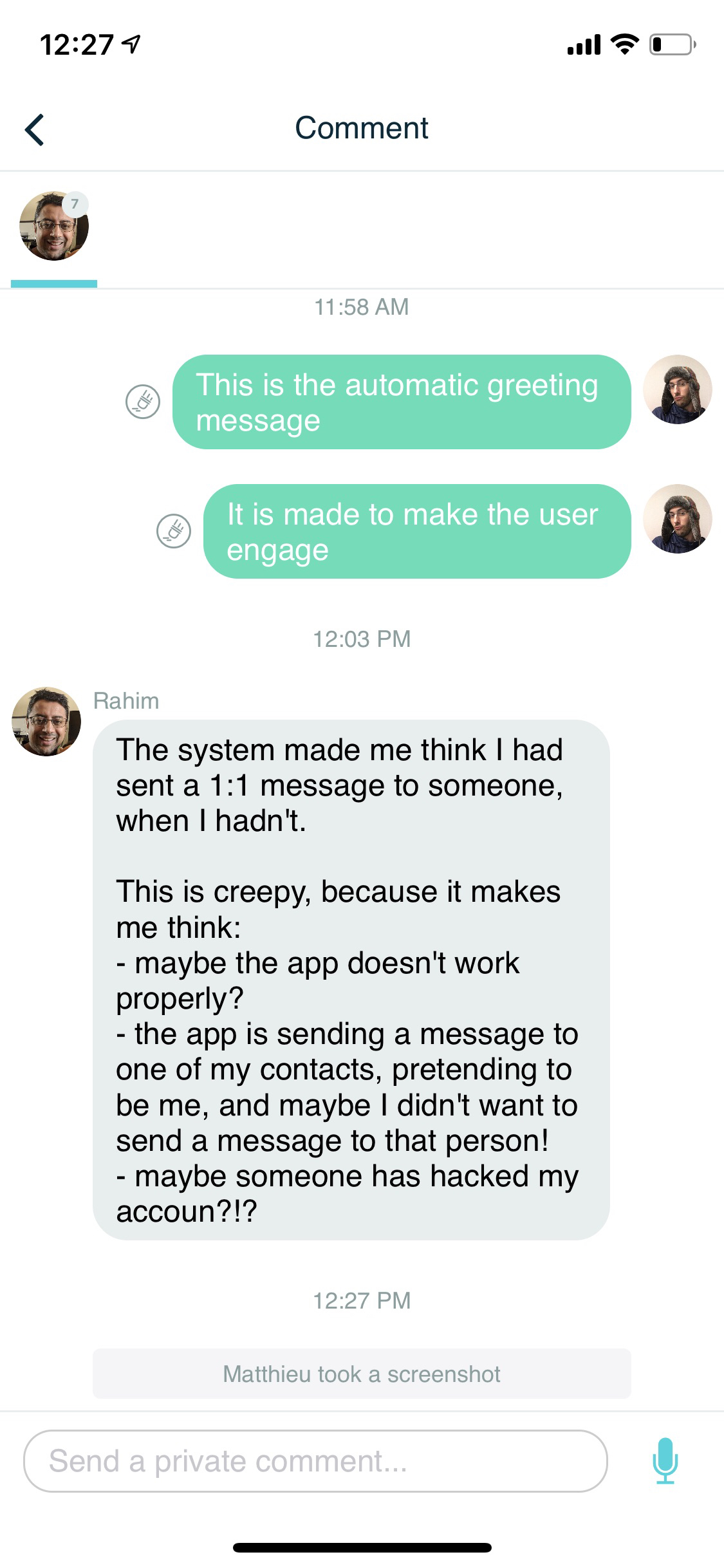 Matthieu 6 years agoshared a media post in group #DogfoodFeedback from @Rahim on automatic greeting post