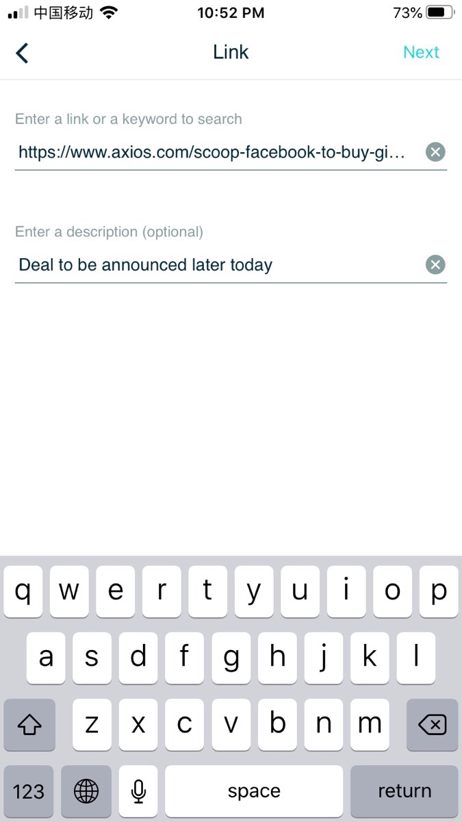 For sharing links, we don’t use same keyboard input as at other places. Don’t see word suggestions, no mentions, no group tagging...