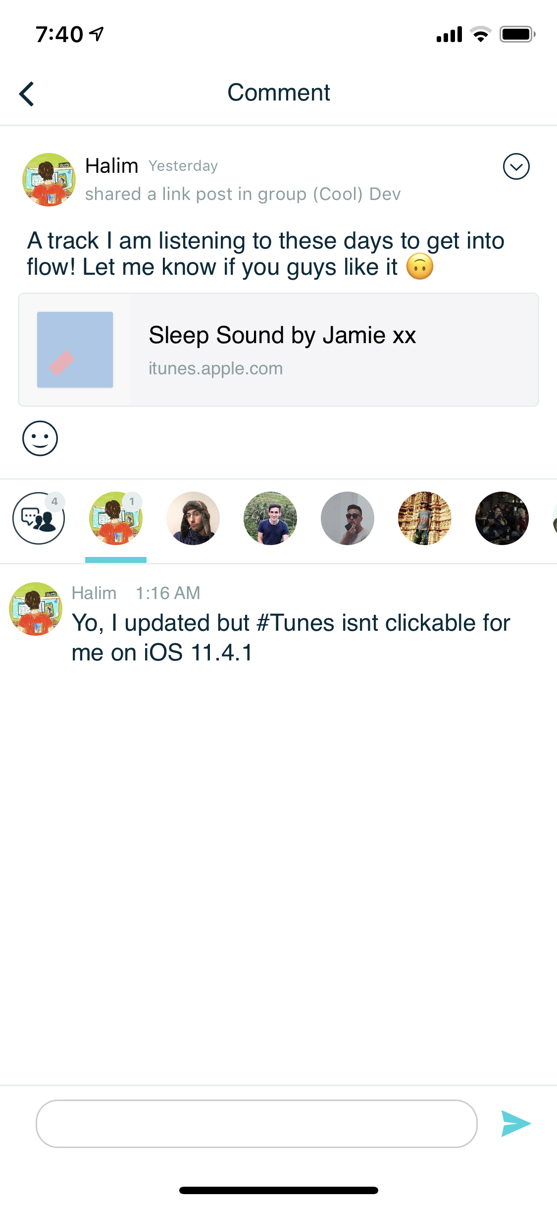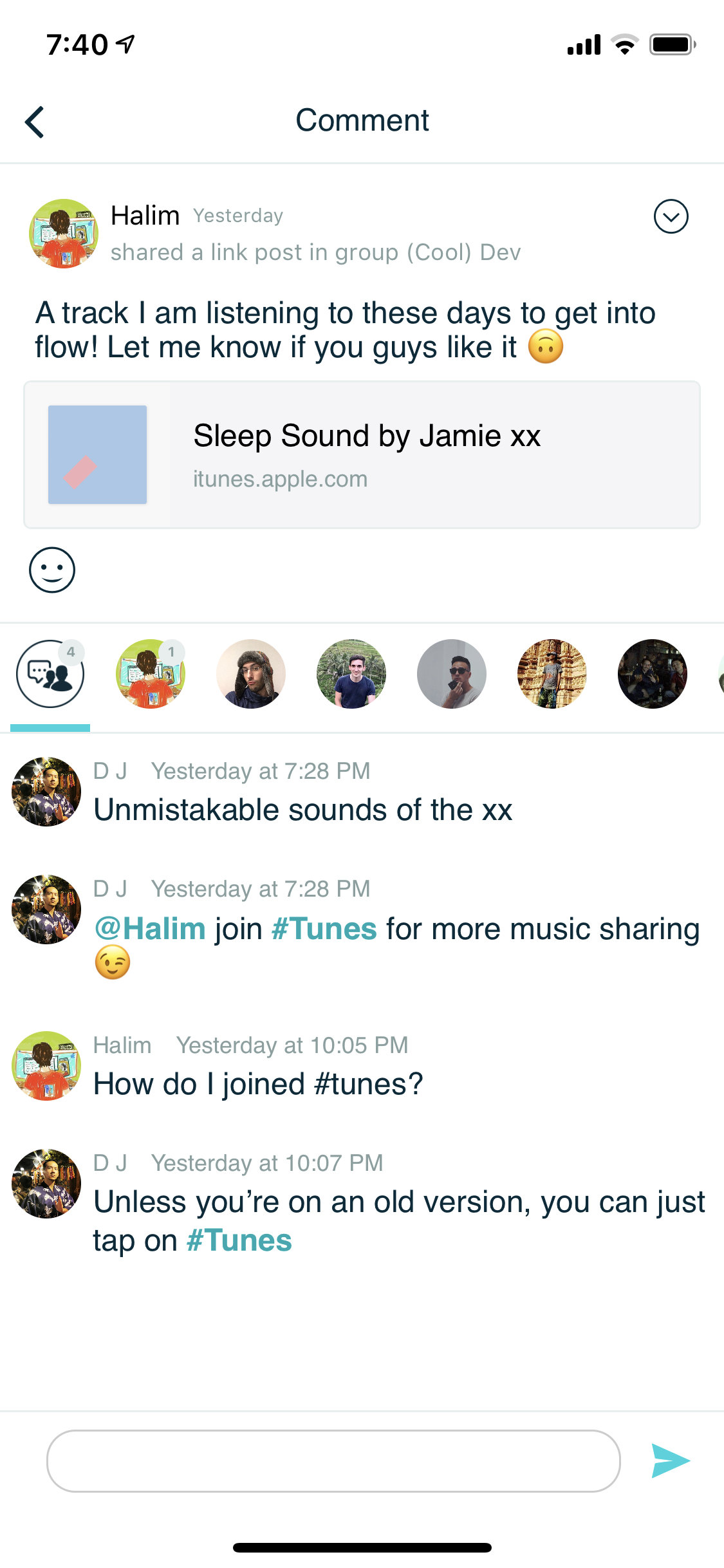 Comment here to discuss with all recipients or tap a user's profile image to discuss privately.
