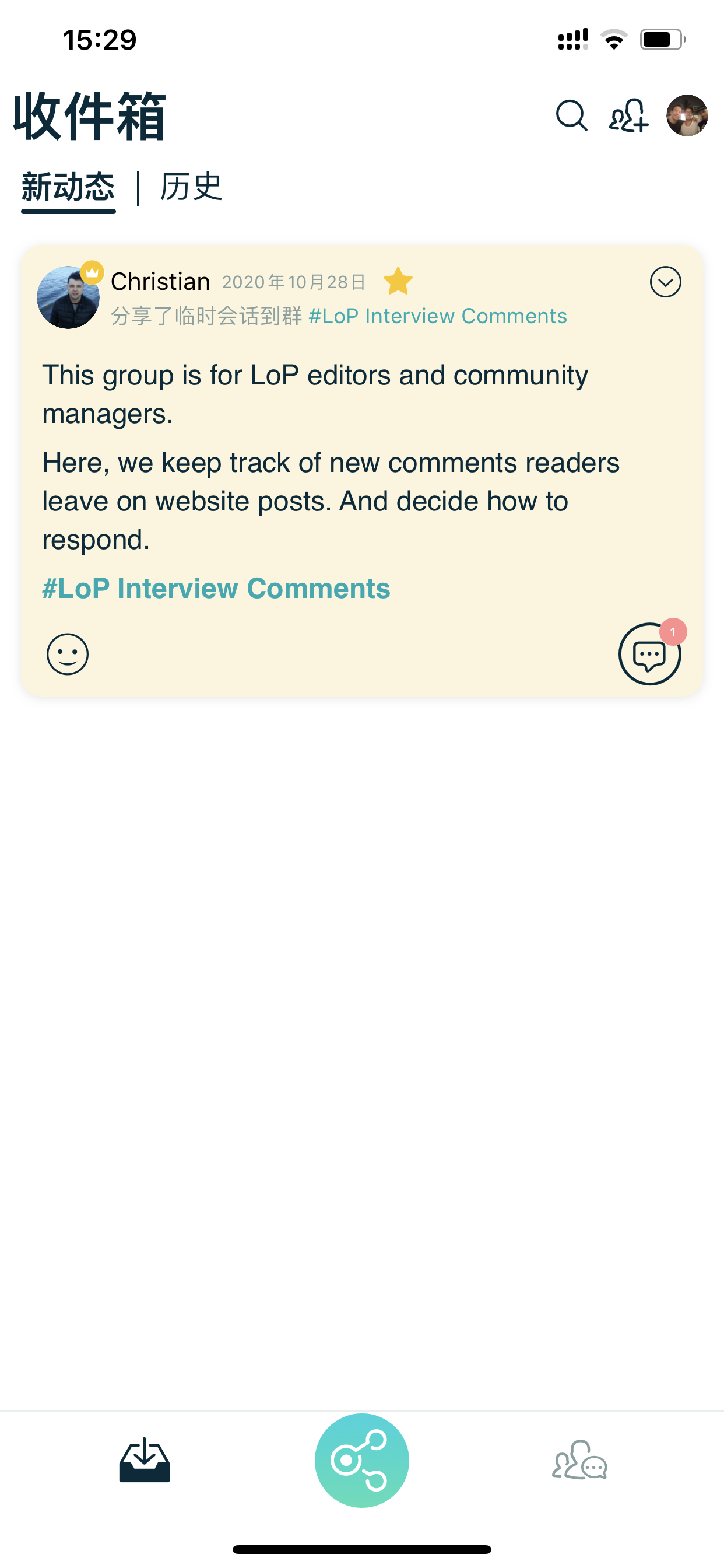 Comment here to discuss with all recipients or tap a user's profile image to discuss privately.