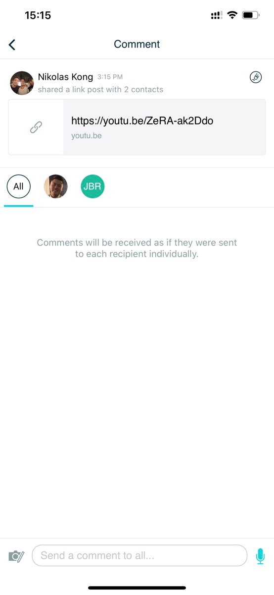 Comment here to discuss with all recipients or tap a user's profile image to discuss privately.