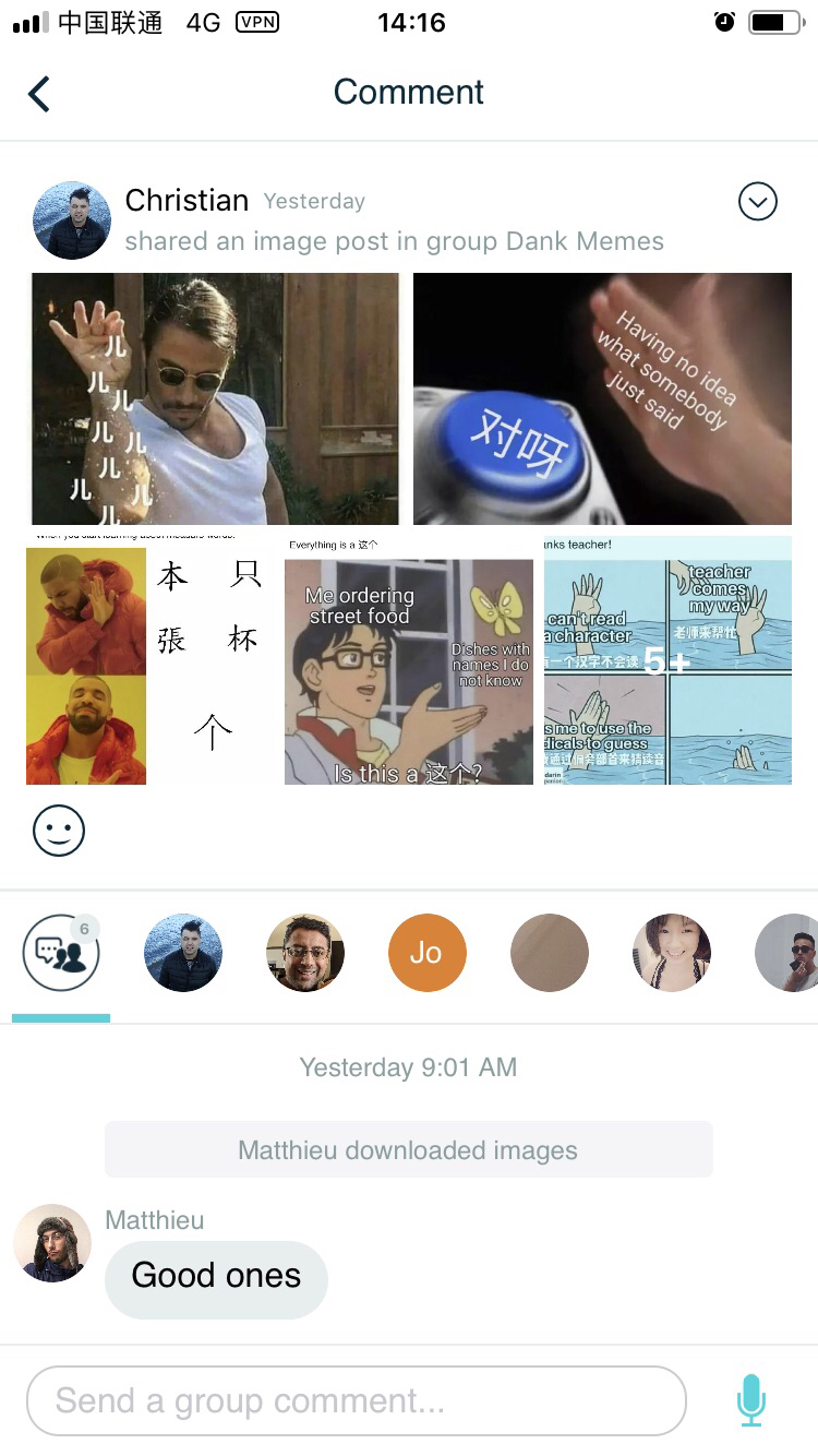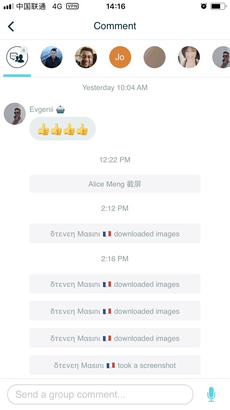Comment here to discuss with all recipients or tap a user's profile image to discuss privately.