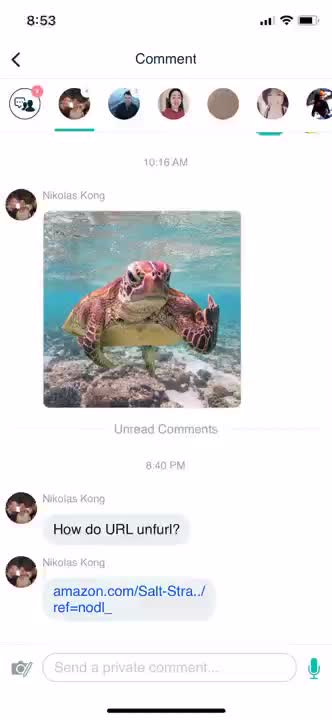 Comment here to discuss with all recipients or tap a user's profile image to discuss privately.
