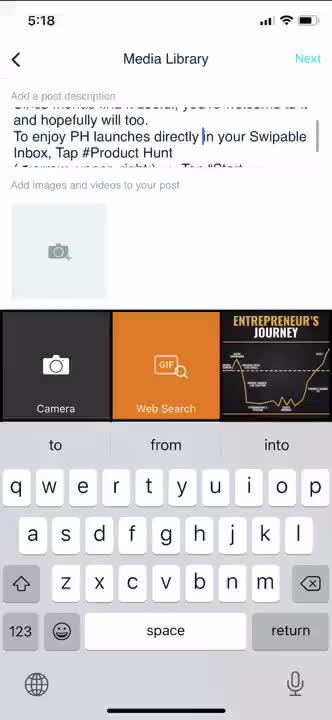 It’s basically impossible to move the cursor to middle of a block of text in the media post input (iPhone 11 v1.108)