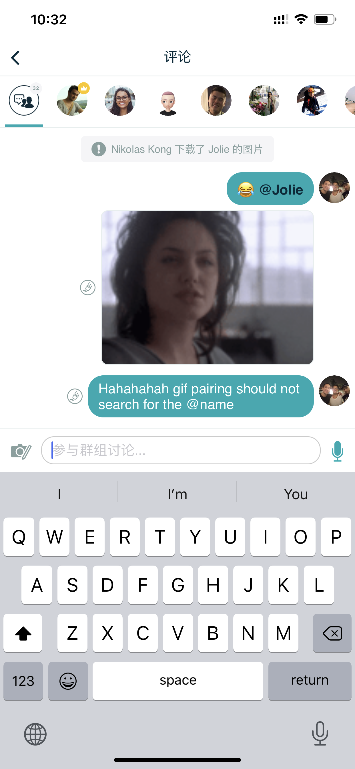 Comment here to discuss with all recipients or tap a user's profile image to discuss privately.