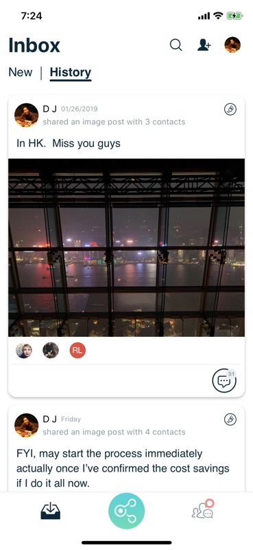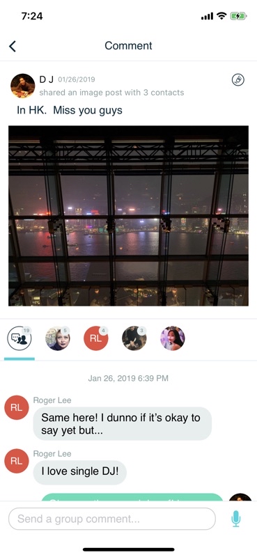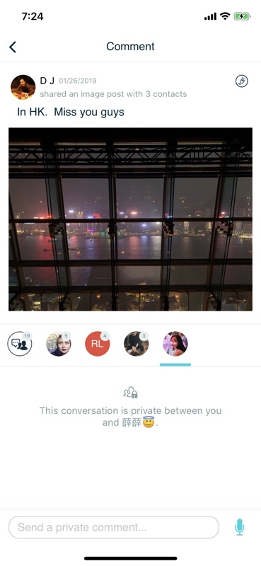 Comment here to discuss with all recipients or tap a user's profile image to discuss privately.