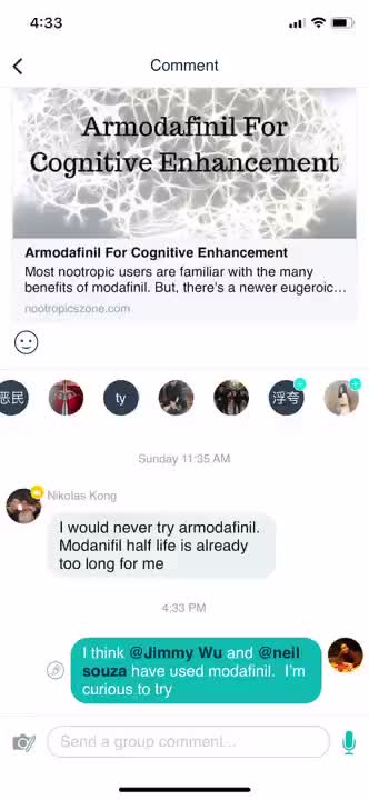 Comment here to discuss with all recipients or tap a user's profile image to discuss privately.