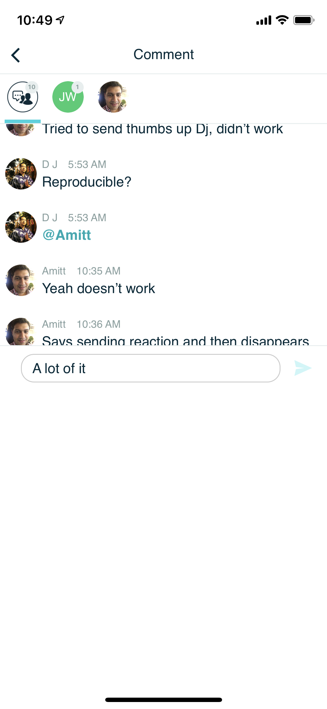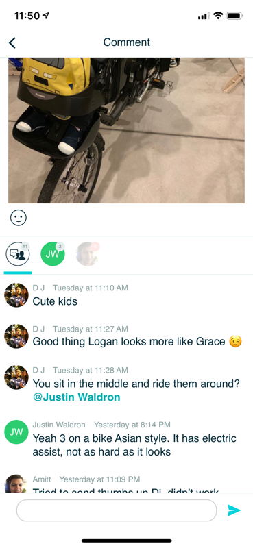 Comment here to discuss with all recipients or tap a user's profile image to discuss privately.