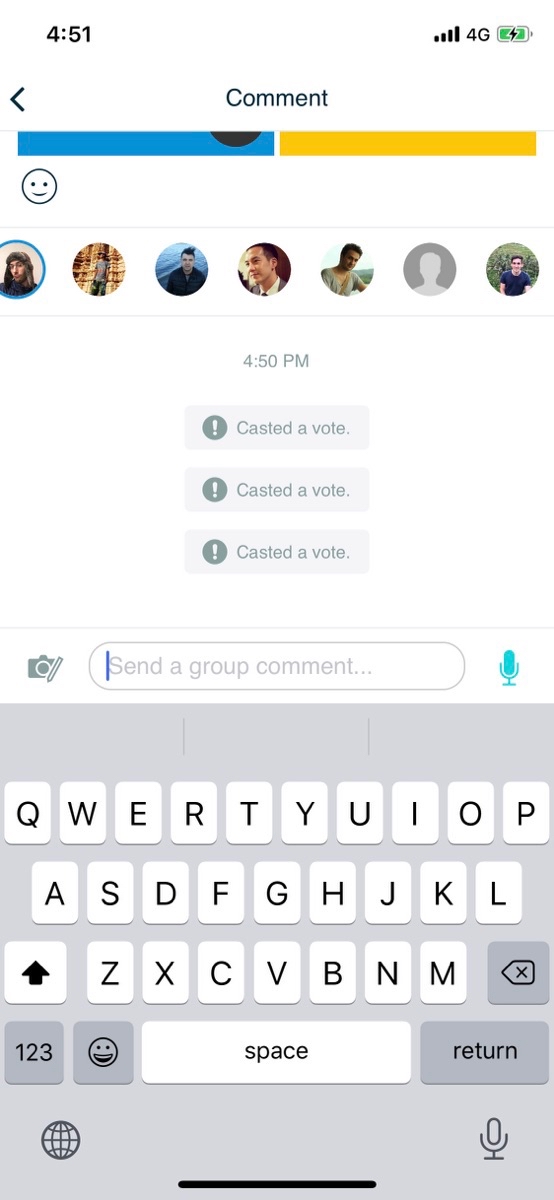 Comment here to discuss with all recipients or tap a user's profile image to discuss privately.