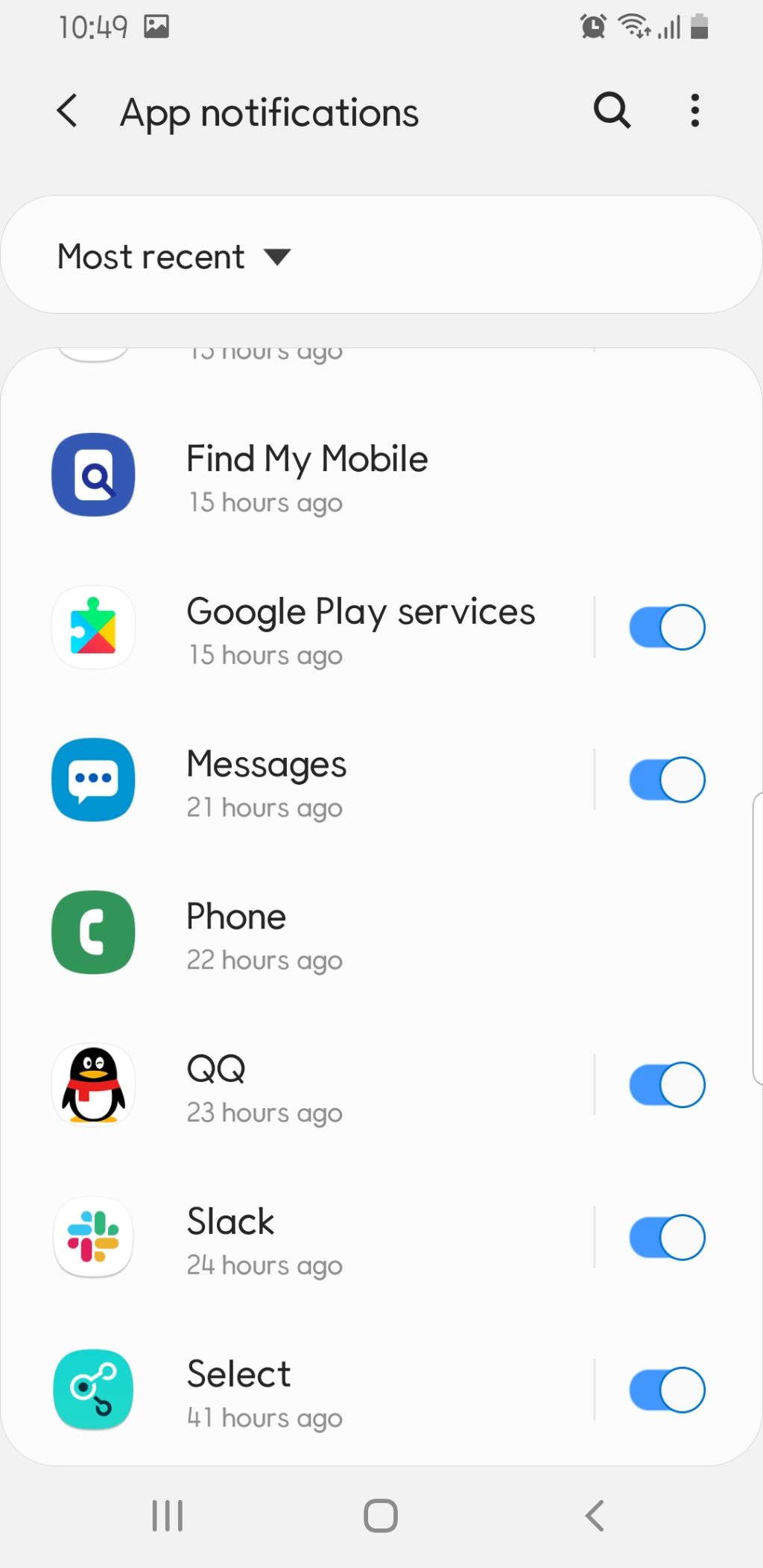 My Samsung phone has no notification from SELECT app even though setting is set as all.
