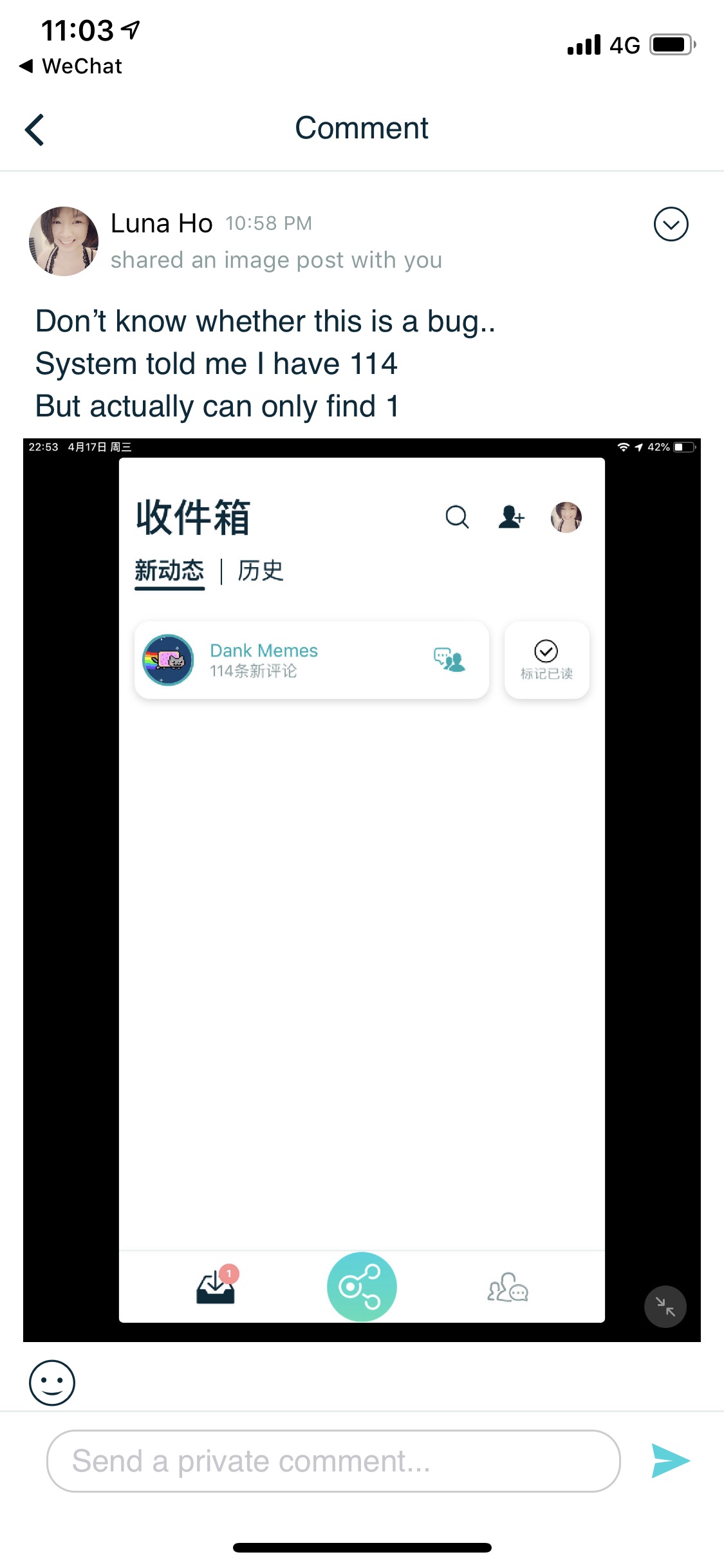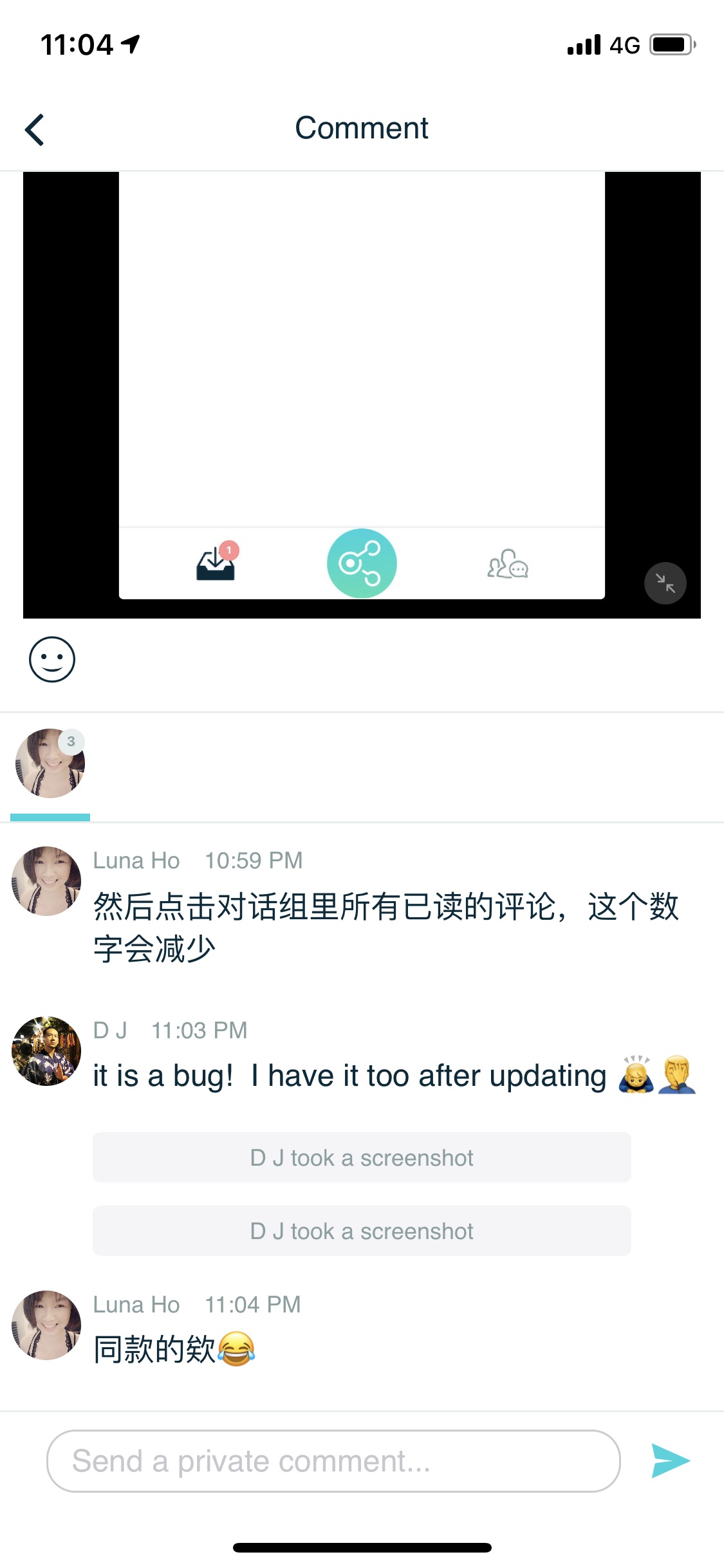 Comment here to discuss with all recipients or tap a user's profile image to discuss privately.
