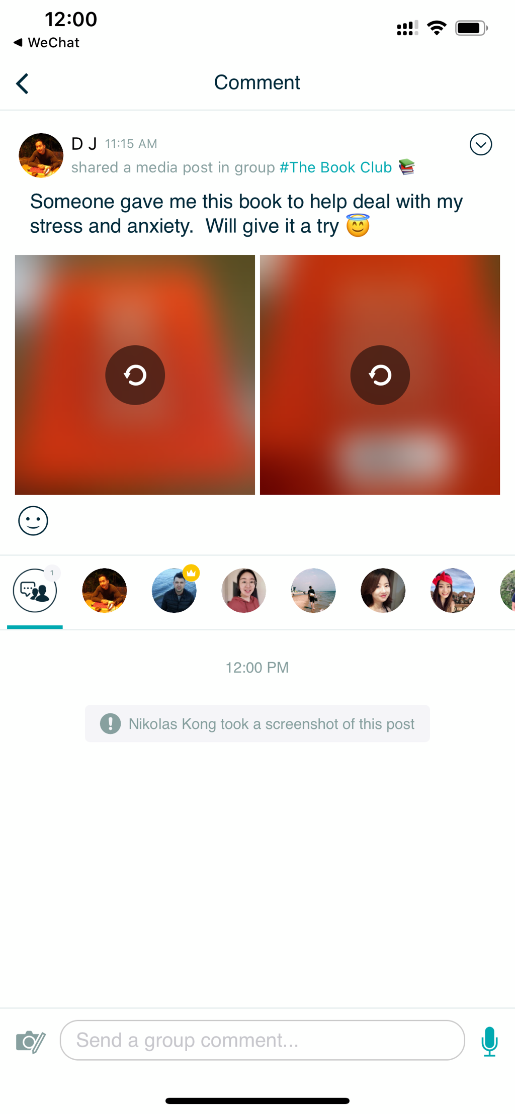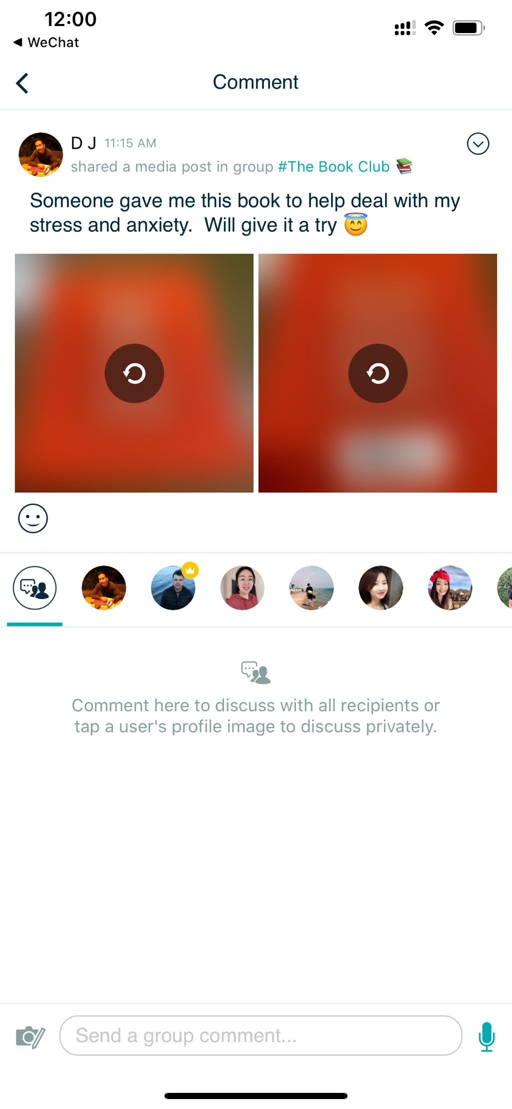 Comment here to discuss with all recipients or tap a user's profile image to discuss privately.