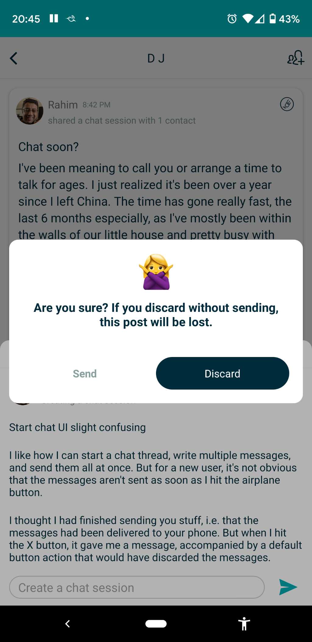 Please log. Default should be to send (I’m almost positive that was the design). Better to impulse tap send (and erase if needed) then lose UGC social loop initiation. Thanks @Rahim