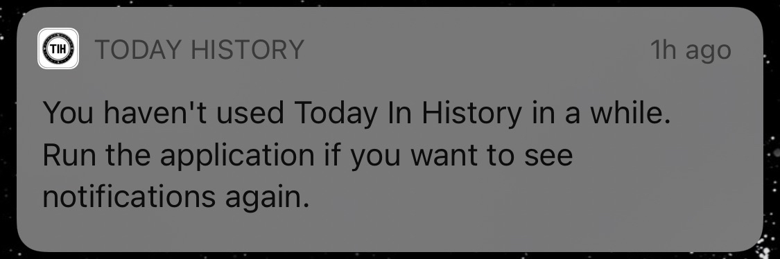 Received this notification from today in history, i think they send it before the push token expired. Could be nice to use it to reactivate an user