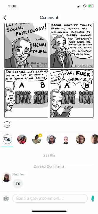 Comment here to discuss with all recipients or tap a user's profile image to discuss privately.