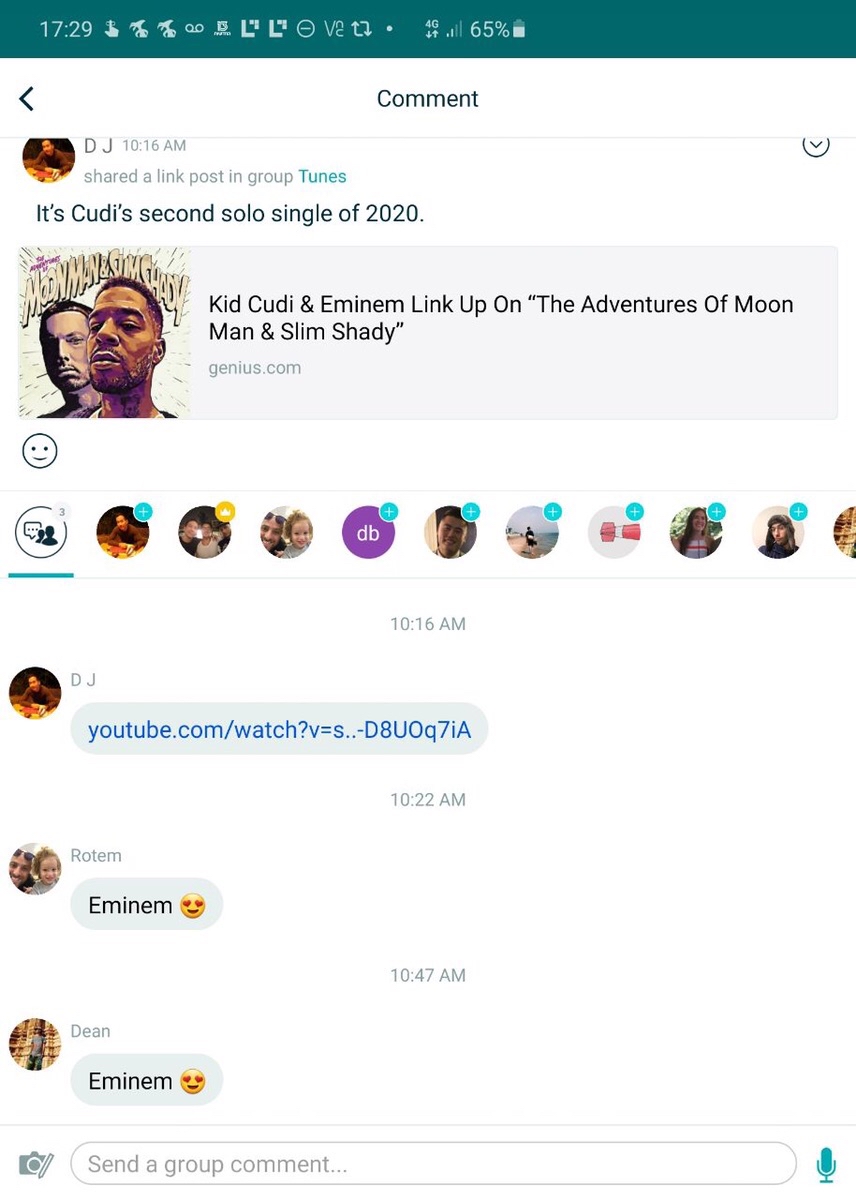 Comment here to discuss with all recipients or tap a user's profile image to discuss privately.
