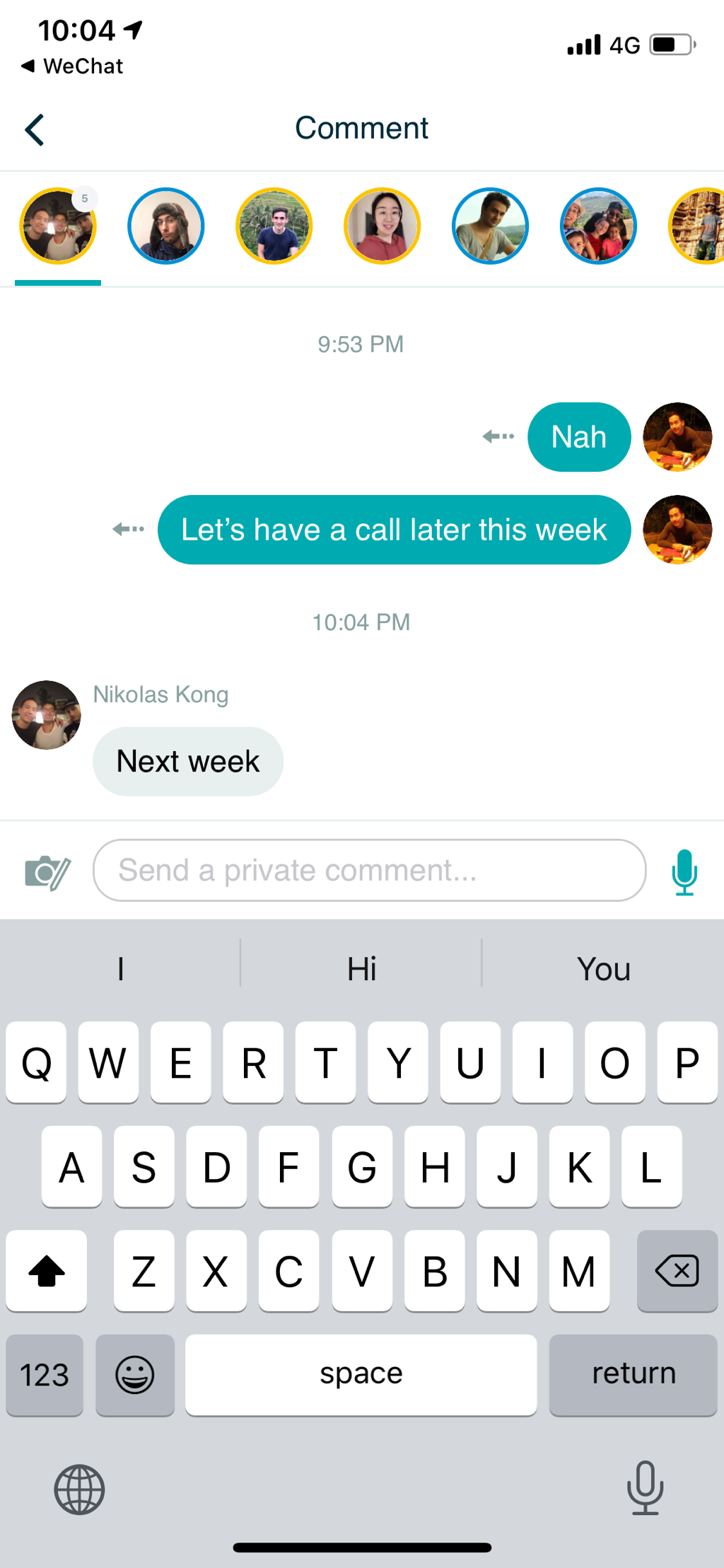 Comment here to discuss with all recipients or tap a user's profile image to discuss privately.