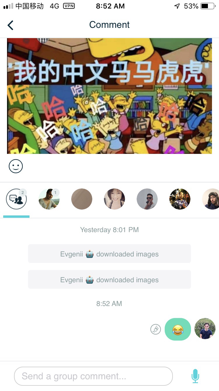 Comment here to discuss with all recipients or tap a user's profile image to discuss privately.