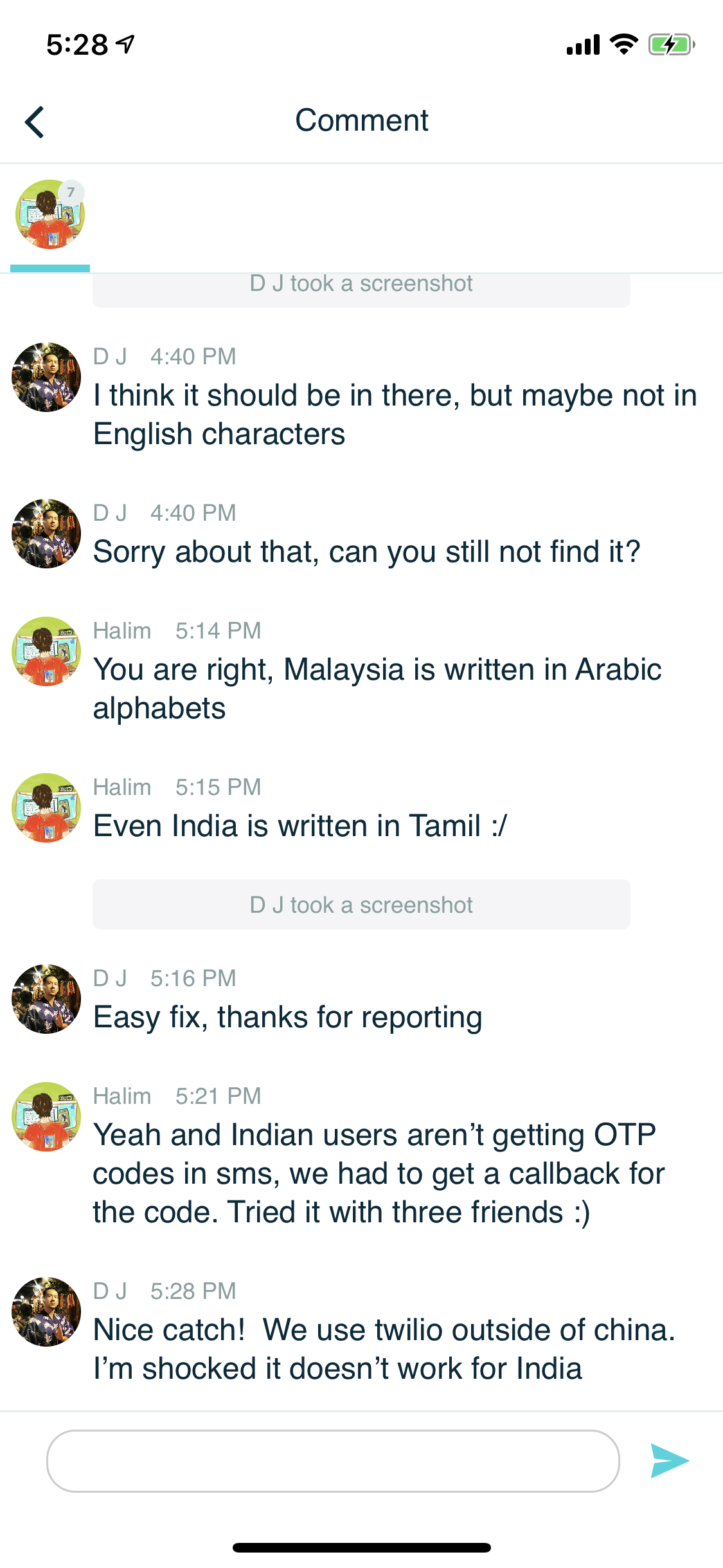 Comment here to discuss with all recipients or tap a user's profile image to discuss privately.