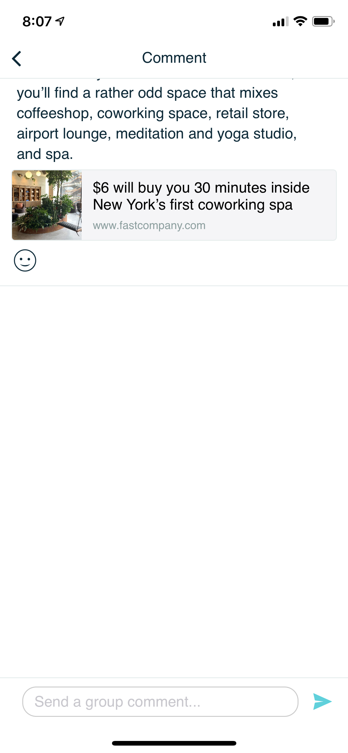 Comment here to discuss with all recipients or tap a user's profile image to discuss privately.