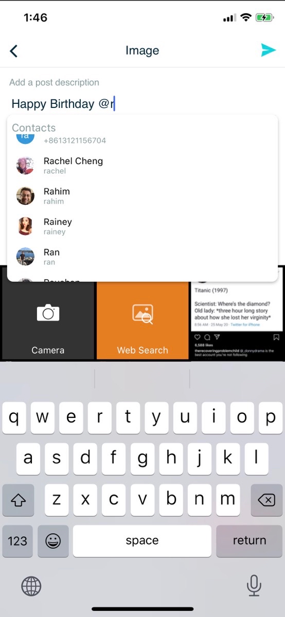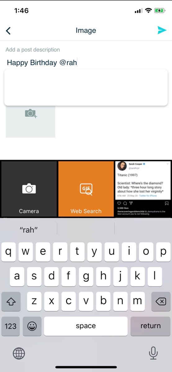 Comment here to discuss with all recipients or tap a user's profile image to discuss privately.