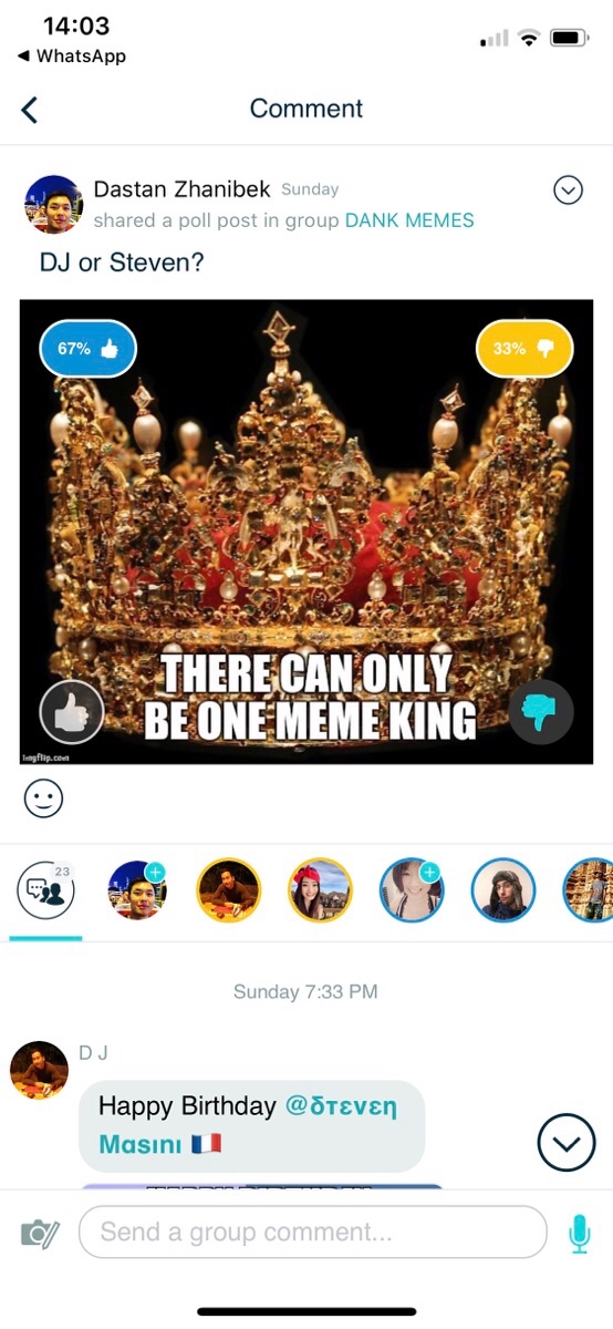 Comment here to discuss with all recipients or tap a user's profile image to discuss privately.