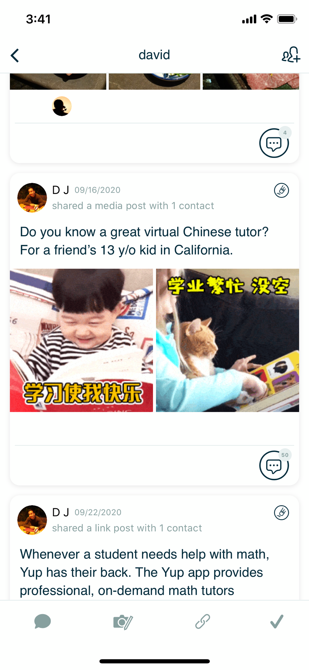 Comment here to discuss with all recipients or tap a user's profile image to discuss privately.