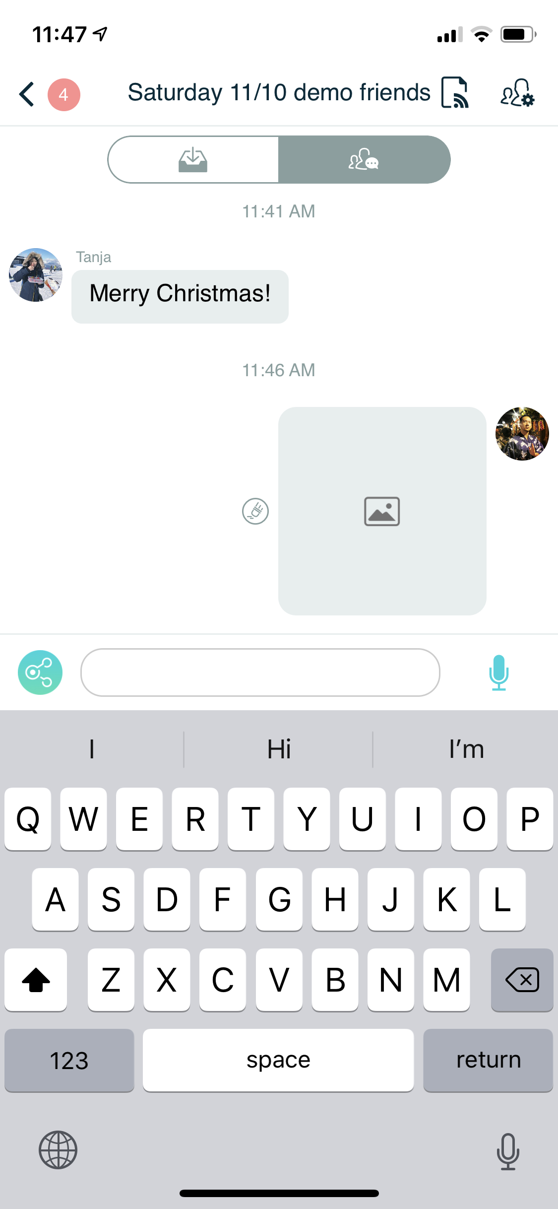 Comment here to discuss with all recipients or tap a user's profile image to discuss privately.