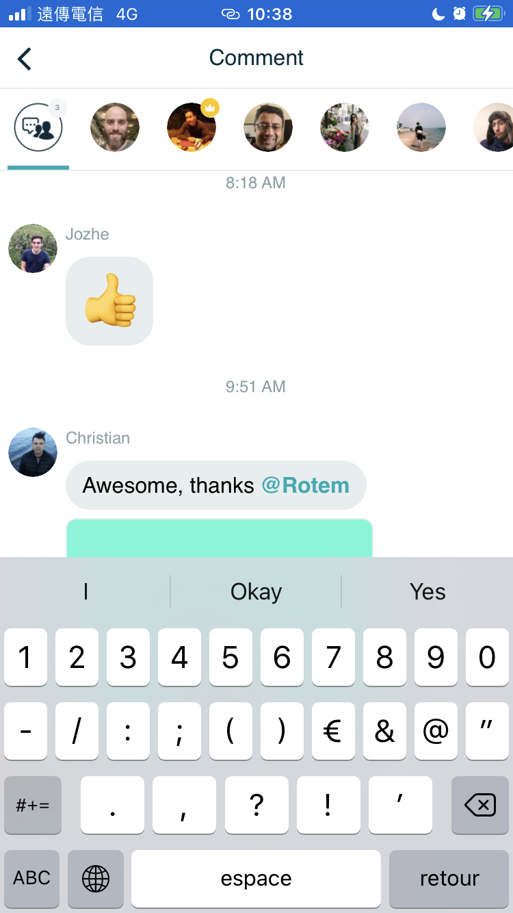 Comment here to discuss with all recipients or tap a user's profile image to discuss privately.