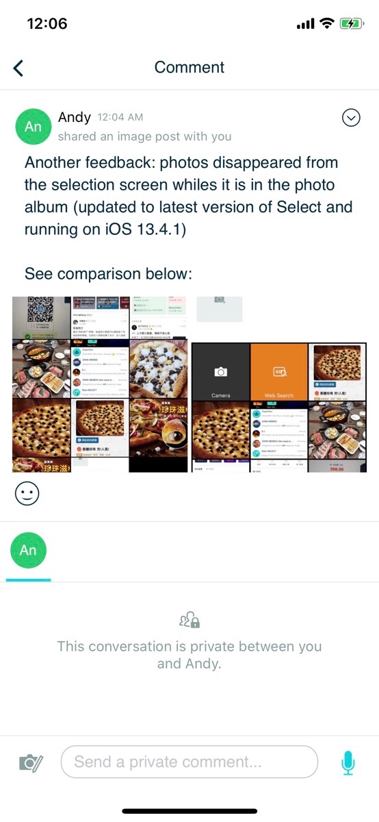 Comment here to discuss with all recipients or tap a user's profile image to discuss privately.