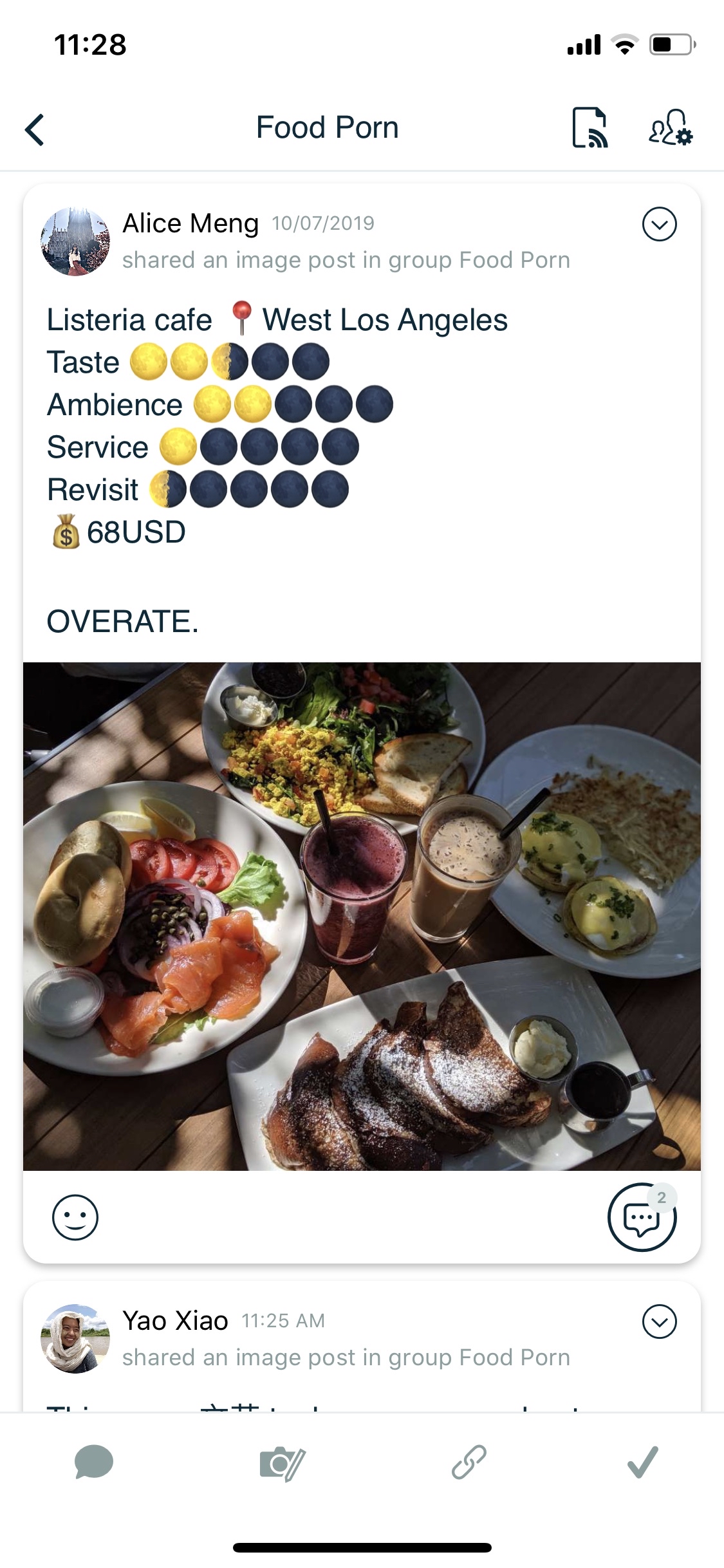 Comment here to discuss with all recipients or tap a user's profile image to discuss privately.