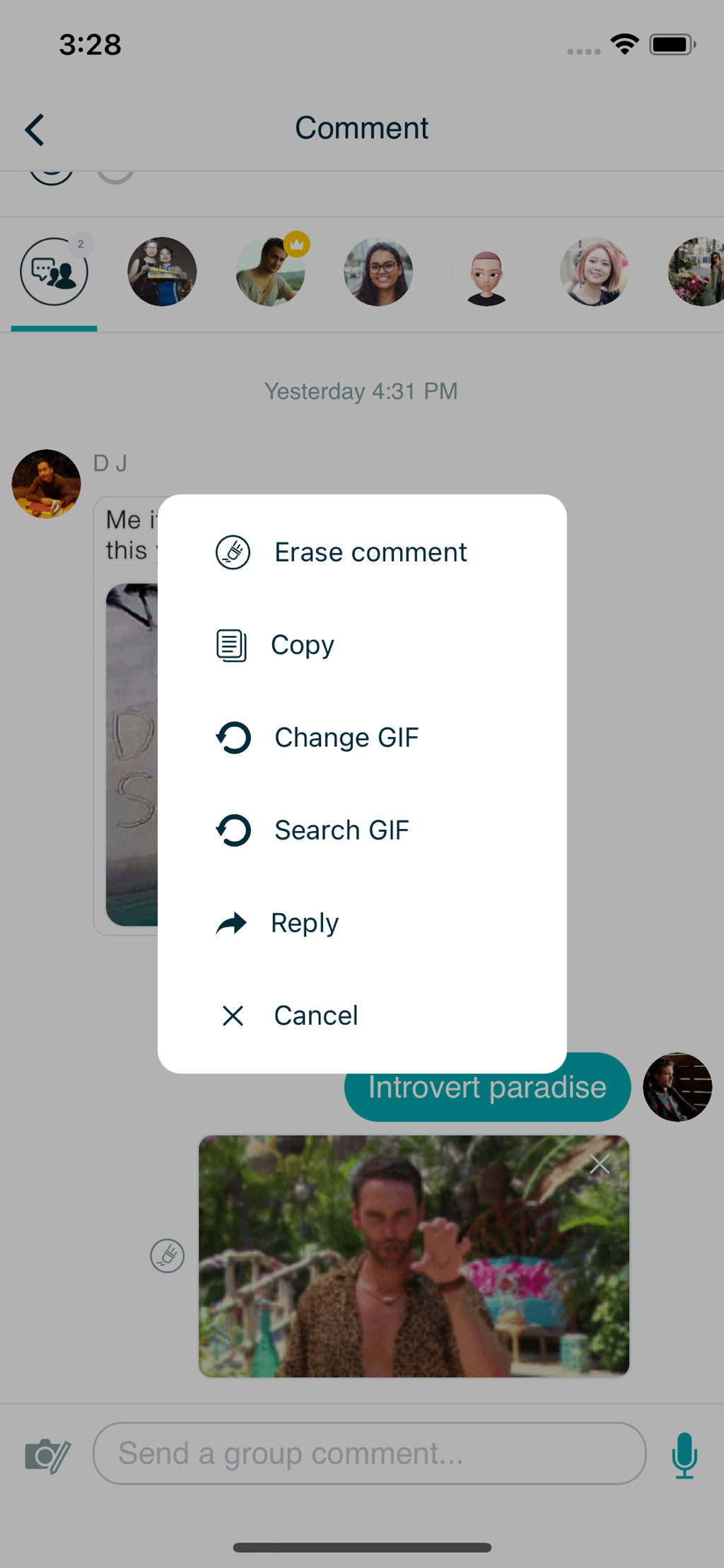 Comment here to discuss with all recipients or tap a user's profile image to discuss privately.