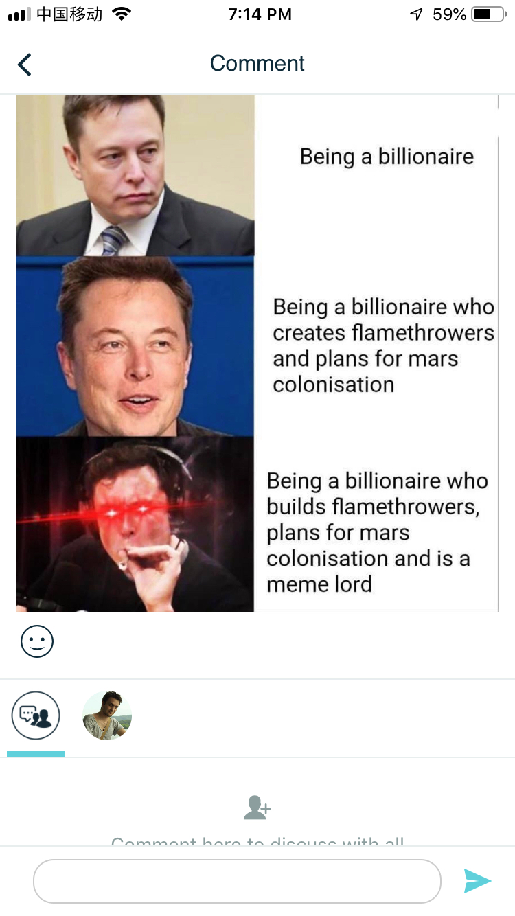 Comment here to discuss with all recipients or tap a user's profile image to discuss privately.