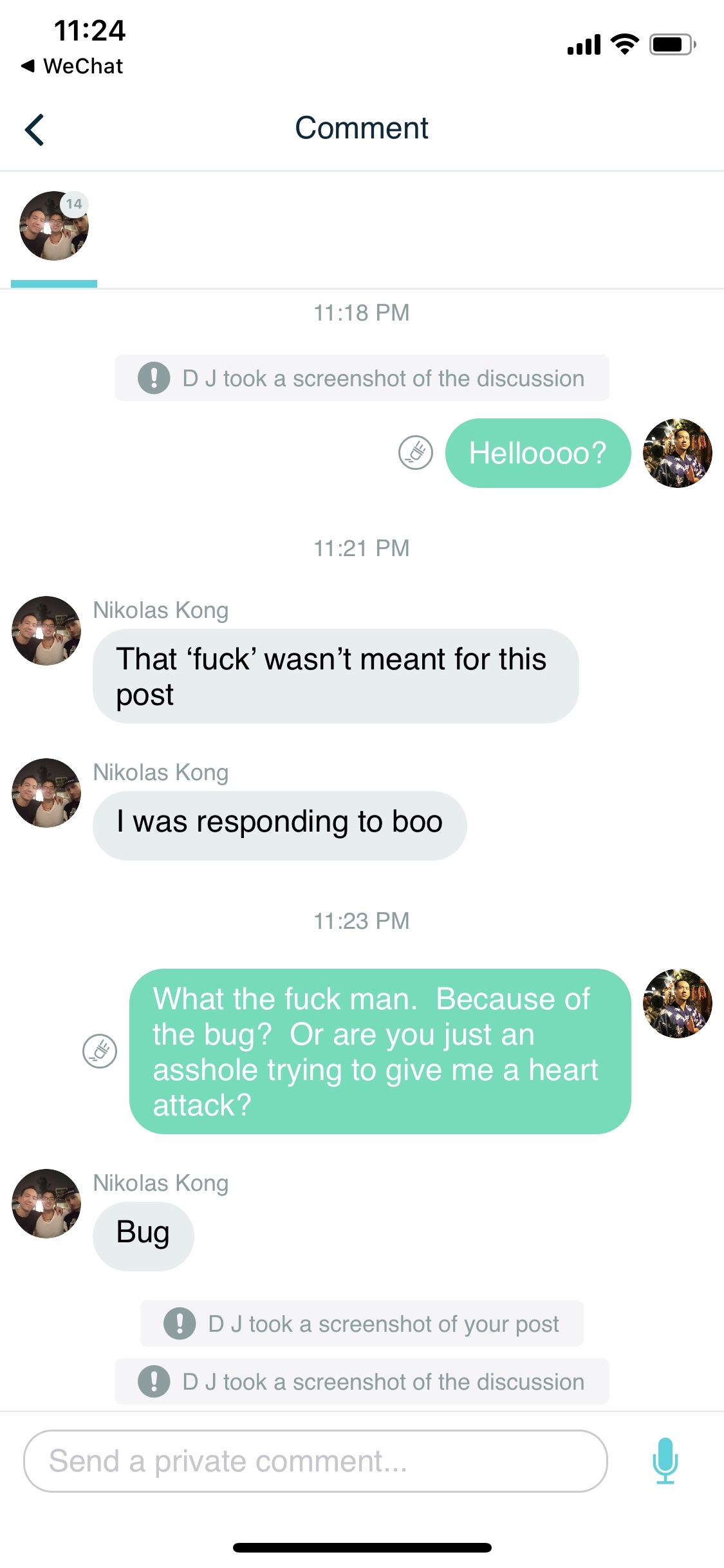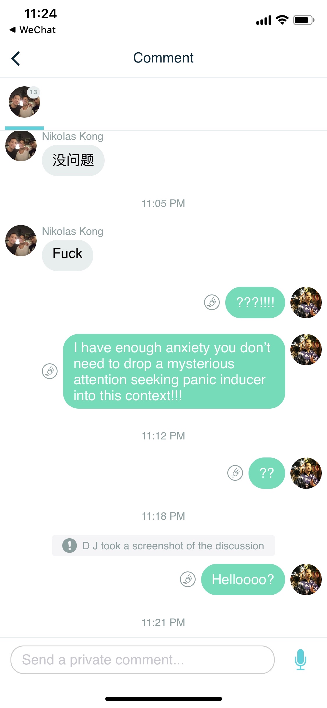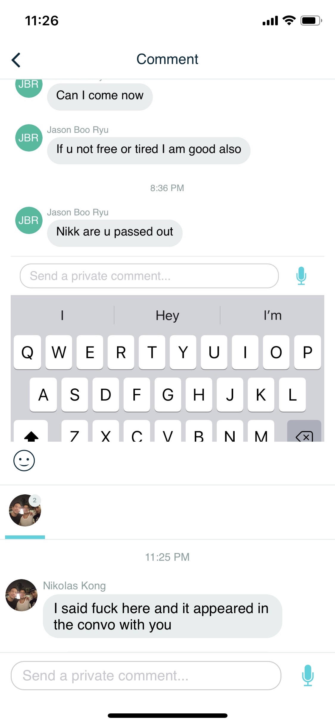 Comment here to discuss with all recipients or tap a user's profile image to discuss privately.