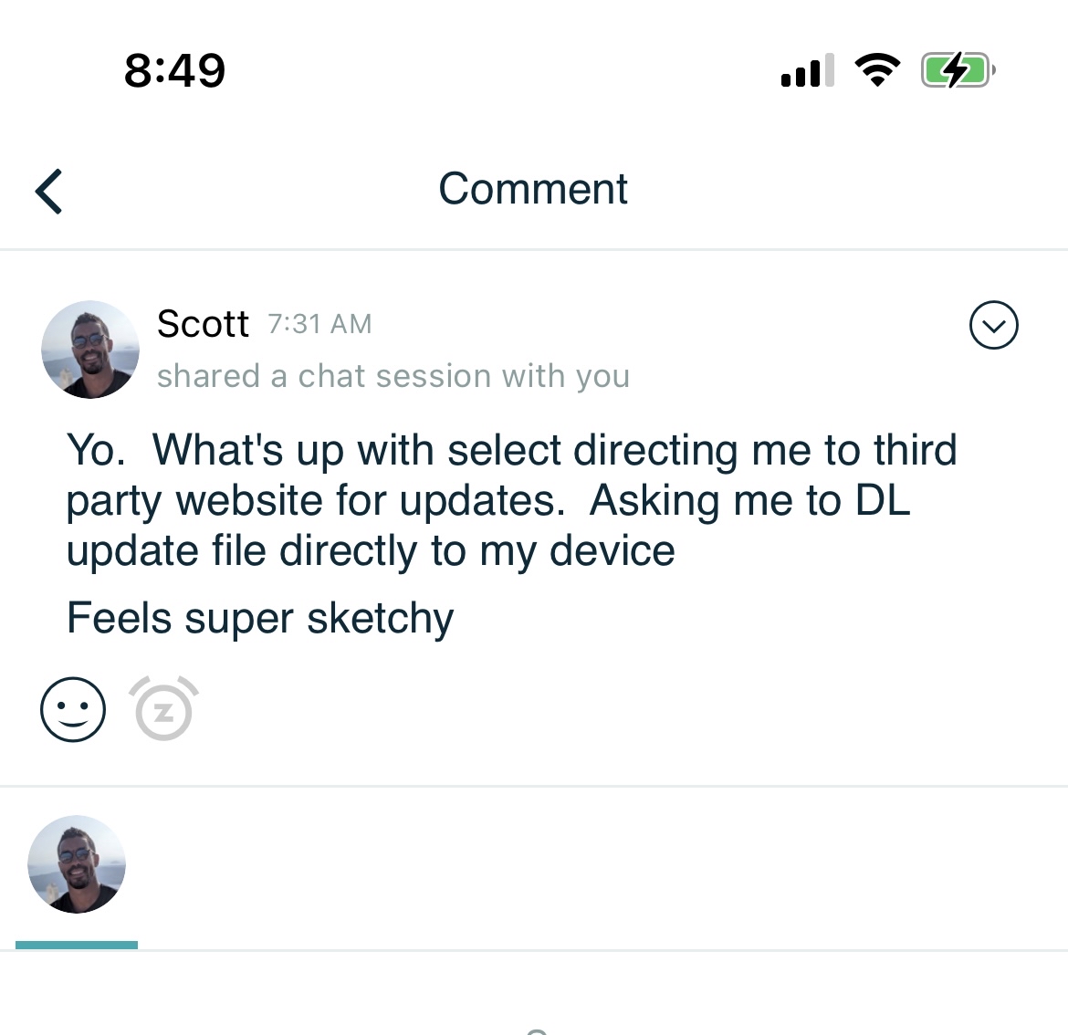 Comment here to discuss with all recipients or tap a user's profile image to discuss privately.