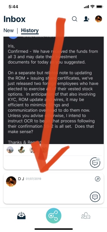 Comment here to discuss with all recipients or tap a user's profile image to discuss privately.