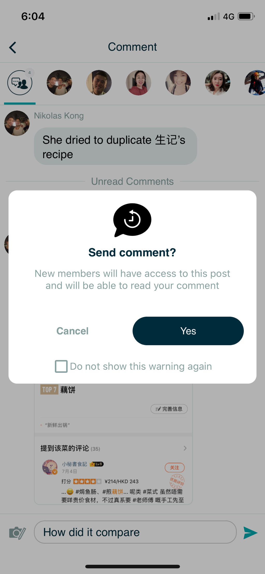 Comment here to discuss with all recipients or tap a user's profile image to discuss privately.